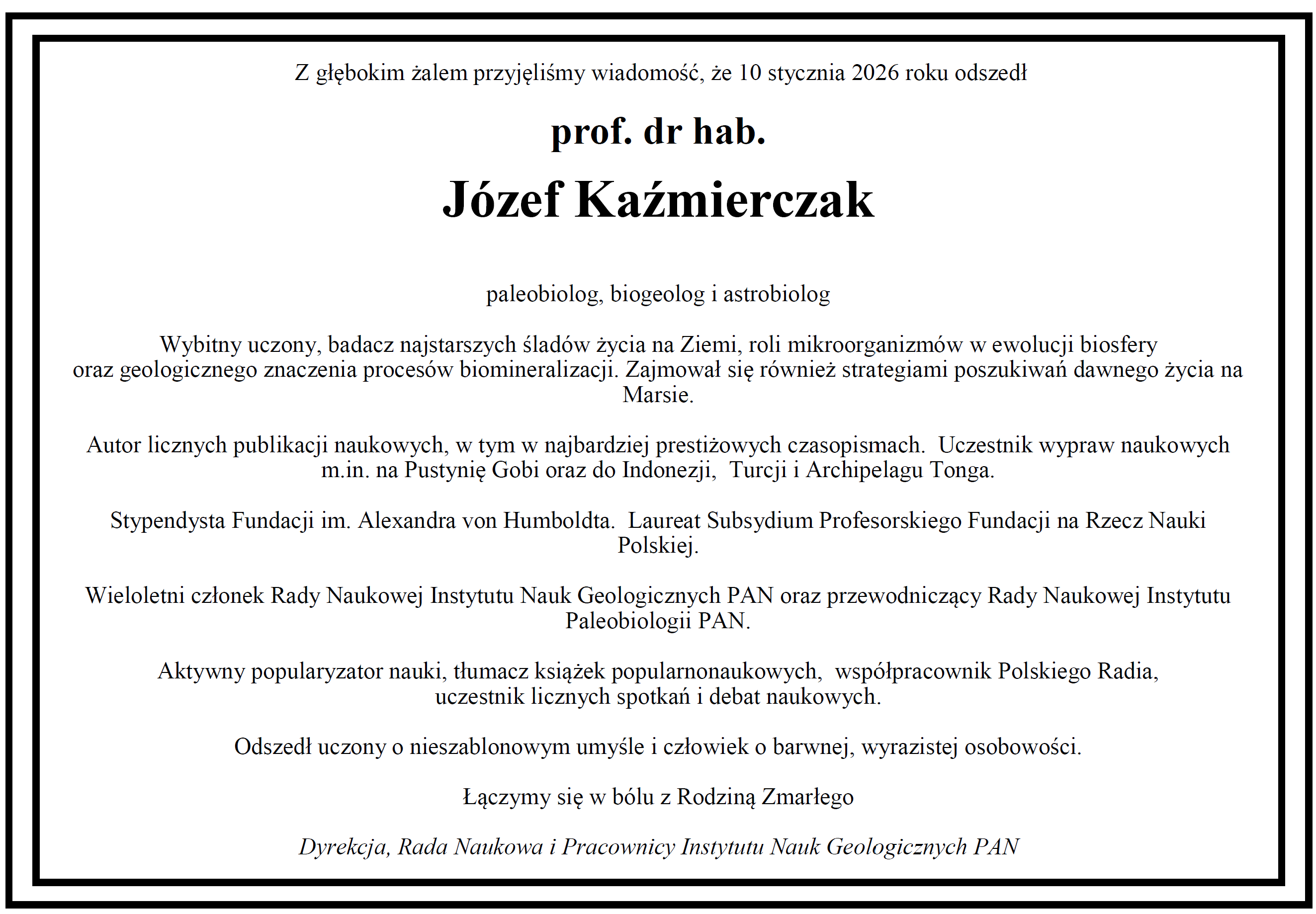 ING PAN (rok założenia 1956) jest instytutem naukowym specjalizującym się w badaniach wieku skał i minerałów oraz ich genezy, odtwarzaniu ewolucji orogenów, rekonstrukcji środowiska geologicznego ze szczególnym uwzględnieniem metod geochemii izotopów, mineralogii, petrologii, sedymentologii, tektoniki, stratygrafii i hydrogeologii oraz paleontologii. Celem naszych badań jest lepsze zrozumienie geosystemu i wykorzystanie tej wiedzy dla potrzeb nowoczesnego społeczeństwa.