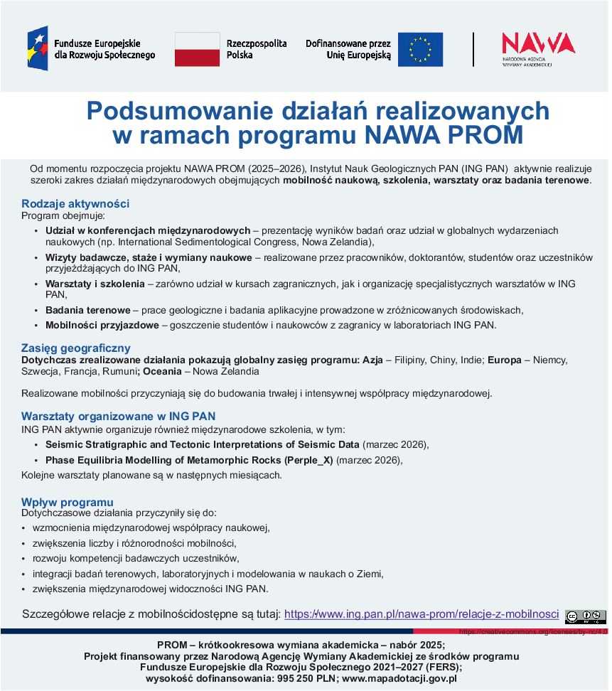 ING PAN (rok założenia 1956) jest instytutem naukowym specjalizującym się w badaniach wieku skał i minerałów oraz ich genezy, odtwarzaniu ewolucji orogenów, rekonstrukcji środowiska geologicznego ze szczególnym uwzględnieniem metod geochemii izotopów, mineralogii, petrologii, sedymentologii, tektoniki, stratygrafii i hydrogeologii oraz paleontologii. Celem naszych badań jest lepsze zrozumienie geosystemu i wykorzystanie tej wiedzy dla potrzeb nowoczesnego społeczeństwa.